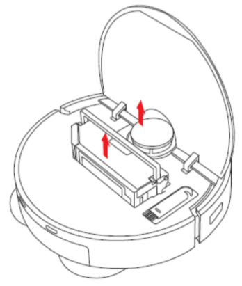 Press the release button and remove the dustbin from the robot.