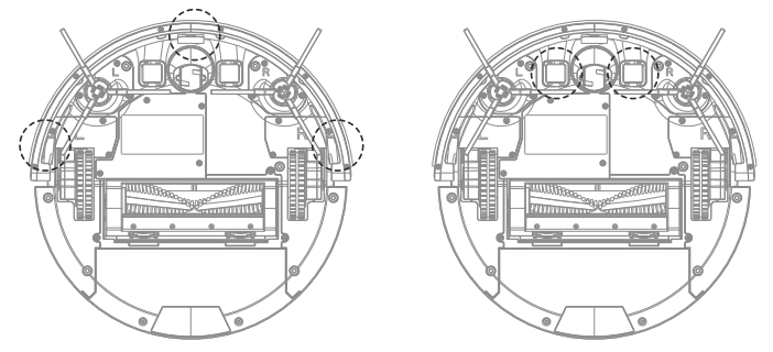 Bottom cliff sensors (underneath the unit)